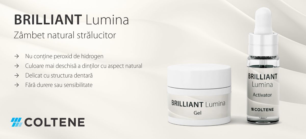 ◦ Contrairement aux produits à base de peroxyde d'hydrogène, qui peuvent entraîner une légère érosion, une rugosité modérée, des microfissures et une sensibilité accrue, BRILLIANT Lumina blanchit les dents en douceur et en toute sécurité, tout en préservant leur santé.