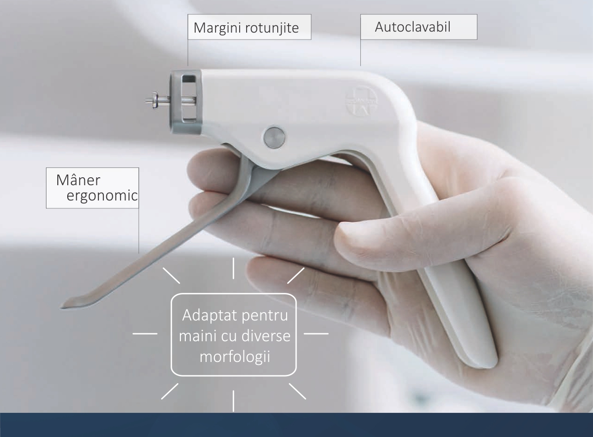 Le pistolet applicateur est autoclavable et conçu pour s'adapter parfaitement aux lendemains, quelles que soient leur morphologie et leur taille. Conception ergonomique avec bords arrondis