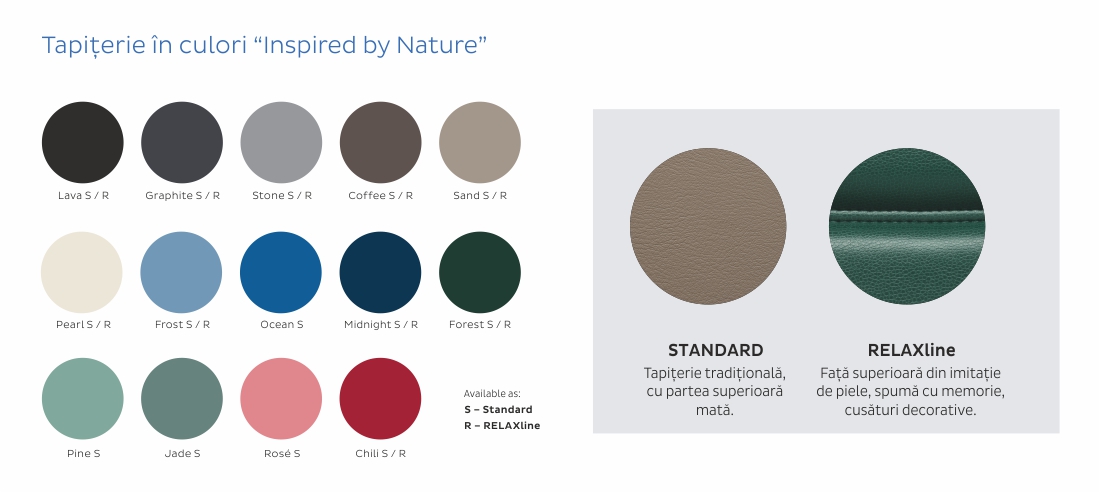 La collection de couleurs KaVo se compose de 14 teintes qui peuvent être choisies pour la sellerie premium confortable de la gamme RELAXline avec des coutures de haute qualité et pour la sellerie traditionnelle KaVo avec une finition mate et des lignes de design dynamiques.