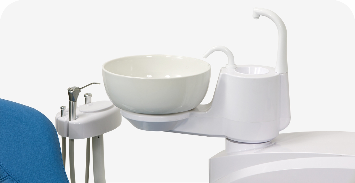 Fauteuil large et confortable pour le patient, avec accoudoirs gauche et droit